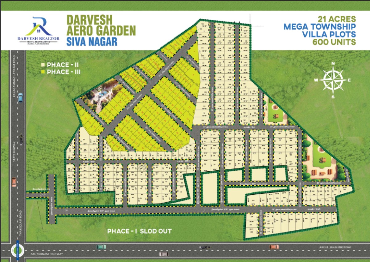 Jemi Housing is a premium residential plotted development located in Siva Nagar, Thakkolam Town. Spread across 21 acres, this project offers 600 well-planned villa plots designed for a peaceful and modern lifestyle.